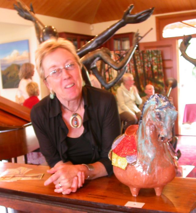 On Sunday 9th November Delene & Pat Grier, of Knockrow hosted an exhibition of local artists work. Bronze sculpture by Frank Miles, paintings by Karena Wynn-Moylan and Simon Harriot and figurative ceramic vessels by Sue Fraser were on display throughout their house and garden.